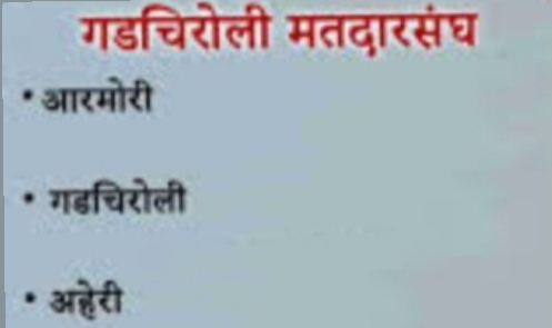 आरमोरी मतदारसंघातून माधुरी मुरारी मडावी,वामन वंगनुजी सावसाकडे,निलेश देवाजी हलामी आणि रमेश गोविंदा मानागडे या ४ उमेदवारांनी अर्ज मागे घेतले तर गडचिरोली मतदार संघातून आसाराम गोसाई रायसिडाम,डॉ.देवराव मादगुजी होळी,मोरेश्वर रामचंद्र किनाके,वर्षा अशोक आत्राम,विश्वजीत मारोतराव कोवासे या ५ उमेदवारांनी अर्ज मागे घेतले आहेत.तसेच अहेरी मतदारसंघातून अवधेशराव राजे सत्यवानराव आत्राम व आत्राम अजय मलय्या या २ उमेदवारांनी आपले अर्ज मागे घेतले आहेत.