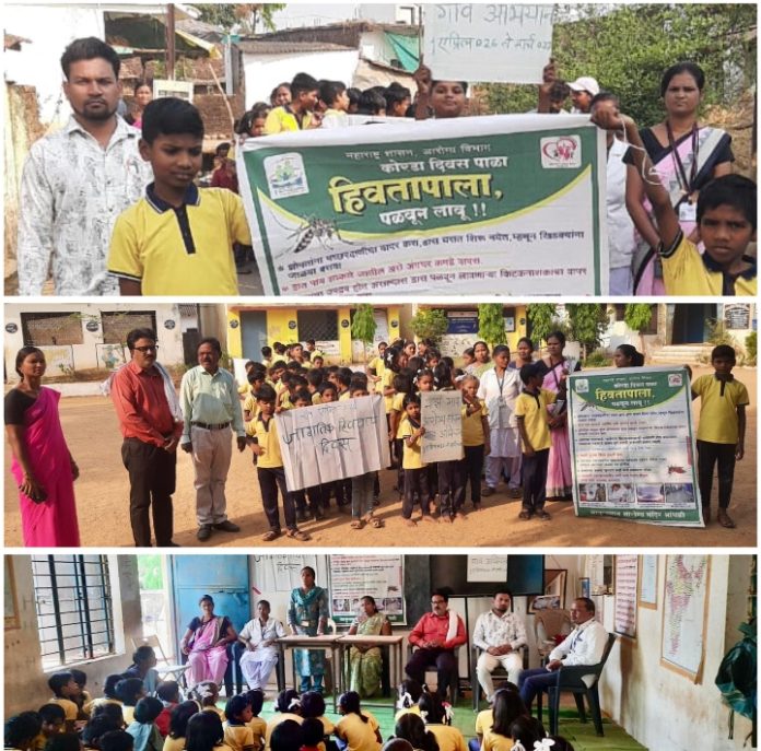 कुरखेडा(गडचिरोली):-जागतिक हिवताप दिनाचे औचित्य साधून आज,शनिवार २५ एप्रिल रोजी कुरखेडा तालुक्याच्या आंधळी येथे जागतिक हिवताप दिन उत्साहात साजरा करण्यात आला.यावेळी विद्यार्थ्यांनी व आरोग्य विभागाच्या वतीने गावात जनजागृती रॅली काढून “डासमुक्त गाव,निरोगी गाव” अशा घोषणांद्वारे नागरिकांमध्ये जागरूकता निर्माण केली.त्यानंतर,शाळेत मार्गदर्शन कार्यक्रम आयोजित करण्यात आला.दरम्यान, लसामुदायिक आरोग्य अधिकारी(सीएचओ)वानखेडे यांनी “आरोग्य संपन्न गाव समिती” चे महत्त्व स्पष्ट केले. तसेच बहुउद्देशीय आरोग्य कर्मचारी(MPW)सुरेंद्र गौतम यांनी स्वच्छता व डास नियंत्रणाबाबत मार्गदर्शन केले. कार्यक्रमाचे सूत्रसंचालन चावर यांनी केले,तर आभार प्रदर्शन नन्नावरे यांनी मानले.या उपक्रमासाठी महिला अधिकारी वानखेडे,सुरेंद्र गौतम,मुख्याध्यापक लाडे, म्हारस्कोल्हे,दीपाली कोडापे,भारती लाडे,वारके सिस्टर,अंगणवाडी सेविका उषा धूपजरे,आशा वर्कर कोकिता सयाम तसेच परिचालक नैताम यांचे विशेष सहकार्य लाभले.विशेषतः उपक्रमामुळे गावात हिवतापाबाबत जागरूकता वाढण्यास मदत झाली.