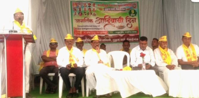 देसाईगंज(गडचिरोली) :-देशातील मुलनिवासी असलेल्या आदिवासी समाजावर शासन व्यवस्थेच्या माध्यमातुन व काही अराजक तत्वांच्या माध्यमातुन सातत्याने अन्याय केला जातो आहे.भारतीय राज्यघटनेच्या माध्यमातुन या समाजाची उन्नती व्हावी; यासाठी बहाल केलेल्या अधिकारांना संपुष्टात आणण्याचे कट कारस्थान राज्यव्यवस्था व न्याय व्यवस्थेच्या माध्यमातुन केले जात आहे.आपले हक्क व अधिकार अबाधित ठेवण्यासाठी आदिवासी समाजाने संघटित होऊन समाजहित संरक्षणाचा लढा उभारला पाहिजे; असे प्रतिपादन आदिवासी तथा काँग्रेस नेते रामदास मसराम यांनी जागतिक आदिवासी दिनानिमित्त कार्यक्रमा प्रसंगी केले.            ९ आगस्ट जागतिक मुल निवासी व आदिवासी दिनाचे औचित्य साधुन देसाईगंच्या क्रांतीसुर्य बिरसामुंडा समितिच्या वतिने फव्वारा चौकात जागतिक आदिवासी दिन कार्यक्रमाचे कार्यक्रमाचे आयोजित करण्यात आले होते.तुकुम वार्डातुन परंपरागत आदिवासी रेला नृत्य सादर करीत आदिवासी बांधव मोठ्या संख्येने  कार्यक्रम स्थळी उपस्थित झाले. कार्यक्रमाला संबोधीत करतांना आदिवासी तथा काँग्रेस नेते रामदास मसराम म्हणाले की,या देशात आदिवासी समाजावर प्रस्थापित व्यवस्थेच्या माध्यमातुन सातत्याने अन्याय केला जात आहे. मणिपूर मध्ये आदिवासी समाजबांधवांच्या कत्तली केल्या जात आहेत; महिलांवर सातत्याने अत्याचार होत आहे.मात्र,या देशातील शासन व्यवस्था याकडे अजिबात लक्ष देत नाही.कोणत्याही समाजाच्या घटनादत्त आरक्षणावर निर्णय घेण्याचे अधिकार केवळ या देशाच्या संसदेलाच असतांना आठवडाभरा पुर्वी सर्वोच्च न्यायालयाने असंवैधानिक मार्गाने निर्णय देत,या देशातिल एससी व एसटी समुदायाला ऱाज्यघटनेने बहाल केलेल्या आरक्षणावर क्रिमिलेयर ची अट लावली.खरे पाहता या समाजांना उन्नतीच्या शिखरावर पोहचण्यासाठी अजुनही संधी उपलब्ध झालेली नाही.आजही हा समाज दारिद्र्याचे जिवन जगतो आहे.या देशातिल नैसर्गीक साधन संपत्तीचे रक्षण करण्याचे काम अतिदुर्गम भागातिल आदिवासी समाज करत आहे.अजुनही या समाजाला आरोग्य सुविधा,शैक्षणिक सुविधा पाहिजे त्या प्रमाणात उपलब्ध होत नाहीत.नैसर्गीक साधन संपत्तीचे रक्षण करणाऱ्या आदिवासी बांधवांची गोड्या झाडुन हत्या केली जाते.पण कुणीही आवाज उठवीत नाहीत.आज परिस्थिती अनुकुल नसतांनाही आदिवासी विद्यार्थी अतिशय मेहनत घेऊन स्पर्धा परिक्षेच्या माध्यमातुन स्व:ताला सिद्ध करण्यासाठी कसोशीचे प्रयत्न करीत आहेत.आदिवासी समाजात विविध जातिंचा समावेश करुन या समाजाच्या अधिकाराची फाळणी करण्याचे कट कारस्थान या देशाच्या शासन व्यवस्थेकडुन केले जात आहे.ही बाब या समाजाच्या आर्थीक शैक्षणिक व राजकिय उन्नतिला मारक असुन त