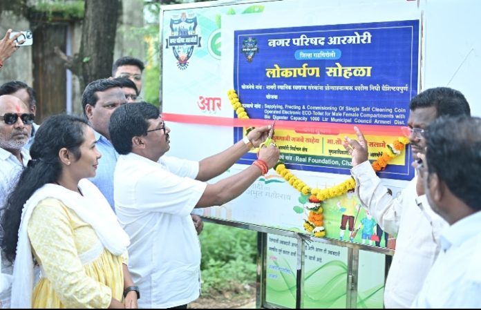 आरमोरी(गडचिरोली):-आरमोरी शहरातील सार्वजनिक स्वच्छतागृहातील अस्वच्छतेचा प्रश्न सातत्याने ऐरणीवर येत असताना,आता शहरात स्वच्छ आणि तंत्रज्ञानावर आधारित स्वच्छतागृहे उभारण्यात आली आहेत.शहरात चार ठिकाणी ई-टॉयलेट चा आज,११ सप्टेंबर रोजी आरमोरी विधानसभा क्षेत्राचे आमदार कृष्णा गजबे यांच्या हस्ते लोकार्पण सोहळा पार पडला.शहरात पहिल्यांदाच आरमोरी नगरपरिषद यंत्रणेने ई-टॉयलेट उभारणीसाठी पुढाकार घेत आरमोरी शहराच्या नवीन बस स्थानक परिसर, आठवडी बाजार,शास्त्रीनगर शेगांव वार्ड क्रमांक-२ व अरसोडा या ठिकाणी ई-शौचालये उभारण्यात आली.