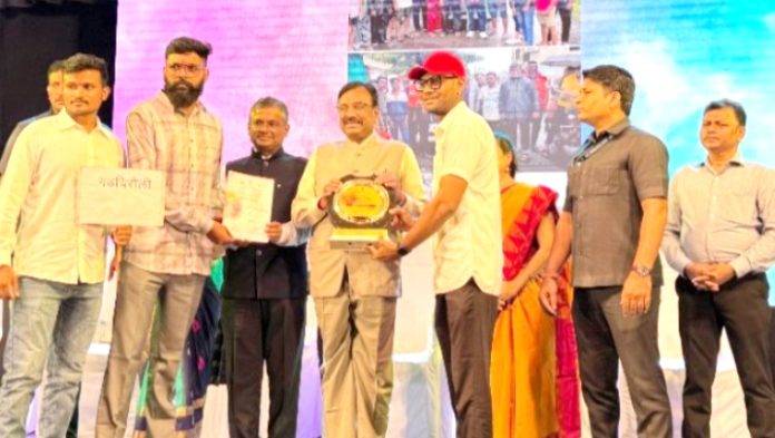 गडचिरोली :-सांस्कृतिक कार्य विभाग आणि पु.ल.देशपांडे महाराष्ट्र कला अकादमीच्या वतीने घेण्यात आलेल्या सर्वोत्कृष्ट सार्वजनिक गणेशोत्सव स्पर्धेत जिल्हास्तरावर सर्वोत्कृष्ट गणेश मंडळ म्हणून आलापल्लीच्या टायगर ग्रुप गणेश मंडळाला सांस्कृतिक कार्यमंत्री सुधीर मुनगंटीवार यांच्या हस्ते पारितोषिक प्रदान करण्यात आले.