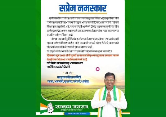 देसाईगंज(गडचिरोली):-शेतकऱ्यांनी शेतीसाठी आवश्यक असणाऱ्या कृषी पंपांच्या नवीन वीज जोडणीसाठी पाच वर्षांपूर्वी त्या-त्या तालुक्यातील विद्युत वितरण कंपनीकडे अर्ज सादर केली.त्यानुसार वितरण कंपनीला मागणी देयकही भरले.मात्र,अजून पर्यंत वीज वितरण कंपनीने कृषी पंपांची जोडणी करून दिलेली नाही.अश्यातच आता कृषी पंपांच्या वीज जोडणीसाठी पाच वर्षांपूर्वी मागणी देयक भरलेल्या शेतकऱ्यांना सोलर पंप घ्यावे,अश्या सूचना विद्युत वितरण कंपनी करीत असल्याने अगोदरच विहिरीतील तसेच इतर ठिकाणातील पाण्याची पातळी खोलवर गेल्याने शेतकऱ्यांसाठी सोलर पंप उपयोगी पडणार नाही; त्यामुळे उद्या,सोमवार १ जून रोजी शेतकऱ्यांसोबत चर्चा विनिमय करण्याकरीता दुपारी १२ वाजेच्या सुमारास देसाईगंज शहराच्या हुतात्मा स्मारक जवळील सिंधी भवन येथे आरमोरी विधानसभा क्षेत्राचे आमदार रामदास मसराम यांच्या प्रमुख उपस्थितीत बैठक आयोजित करण्यात आली आहे.सदर बैठकीस देसाईगंज,आरमोरी,कुरखेडा,कोरची सह धानोरा तालुक्यातील पिडीत शेतकऱ्यांनी उपस्थित राहण्याचे आवाहन तालुका काँग्रेस कमिटीच्या वतीने करण्यात आले आहे.