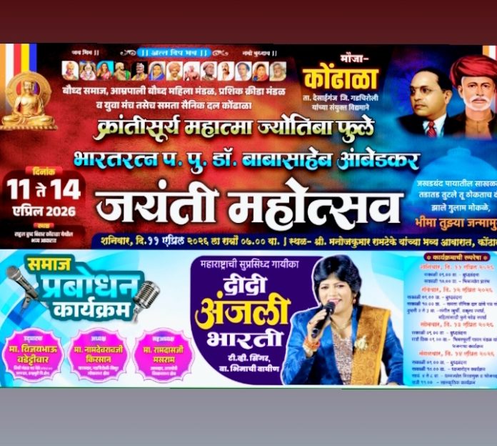 कोंढाळा येथे क्रांतीसुर्य महात्मा ज्योतिबा फुले व भारतरत्न डॉ.बाबासाहेब आंबेडकर “जयंती महोत्सव”.. – उद्याला सुप्रसिद्ध गायिका अंजली भारती यांचा समाज प्रबोधनपर कार्यक्रम..