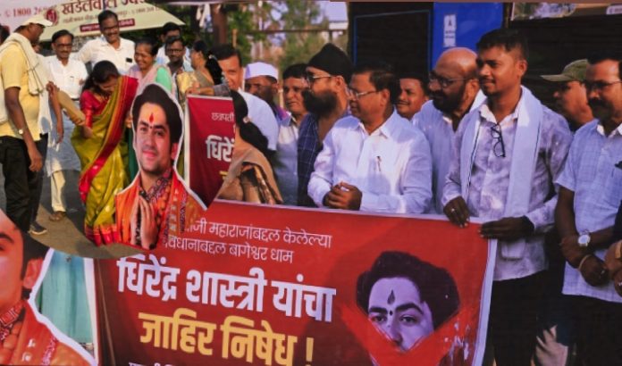 देसाईगंज(गडचिरोली):-नुकतेच धिरेंद्र शास्त्री उर्फ बागेश्वर धाम बाबाने रयतेचे राजे छत्रपती शिवाजी महाराजांविषयी केलेल्या कथित अवमानकारक वक्तव्याच्या निषेधार्थ आज,मंगळवार २८ एप्रिल रोजी आरमोरी विधानसभा क्षेत्रातील काँग्रेस कमिटीच्या वतीने देसाईगंज-ब्रम्हपुरी मुख्य मार्गावर आंदोलन पुकारण्यात आला.दरम्यान,उपस्थित आंदोलनकर्त्यांनी धिरेंद्र शास्त्रीच्या फोटोला चपलेचा प्रसाद देत मुर्दाबादचे नारे लावून भोंदू बाबा विरोधात तात्काळ गुन्हा दाखल करून कठोरात कठोर कारवाई करावी,तसेच भविष्यात अशा घटनांना आळा घालण्यासाठी प्रतिबंधात्मक उपाययोजना कराव्यात,अशी मागणी निवेदनाद्वारे करण्यात आली.