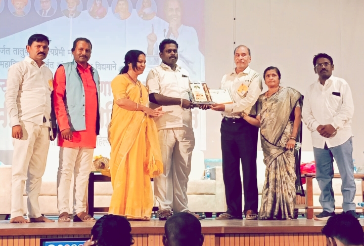 ‘सैराट’ या प्रसिद्ध चित्रपटाची शुटींग जिथे पार पडली; अशा दादा पाटील महाविद्यालय कर्जत येथील शारदाबाई पवार सभागृहात झालेल्या पुरस्कार वितरण सोहळ्यात प्रसिद्ध साहित्यिक ‘दंगल’कार नितीन चंदनशिवे, सौ.शर्मिला गोसावी,सत्यवान मंडलिक,प्रा.नवनाथ केंदळे,प्रा.तानाजी डाडळ, देविदास राऊत आदी मान्यवरांच्या उपस्थितीत हा पुरस्कार प्रदान करण्यात आला.