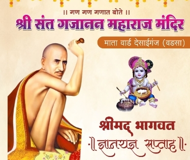 देसाईगंज(गडचिरोली):-देसाईगंज शहराच्या माता वार्ड येथील श्री गजानन महाराज मंदिरात दरवर्षी प्रमाणे यंदाही श्री गजानन महाराज प्रगट दिनानिमित्य ‘श्रीमद् भागवत ज्ञानयज्ञ सप्ताह’ आज,गुरुवार १३ फेब्रुवारी पासून ते २० फेब्रुवारी पर्यंत आयोजित करण्यात आलेला आहे.त्यानिमित्ताने १३ फेब्रुवारी ते २० फेब्रुवारी पर्यंत हरी भक्त परायण ज्ञानेश्कन्या वैशालीताई इंगळे, रा.अमरावती यांचा संगितमय भागवत सप्ताहाचा कार्यक्रम आयोजित करण्यात आला आहे.तसेच येत्या सोमवार १७ फेब्रुवारीला दुपारी ३ वाजेच्या सुमारास शोभायात्रा व गुरुवार २० फेब्रुवारीला श्री गजानन महाराज प्रगट दिनानिमीत्य भागवत कथा समारोप, किर्तन,गोपालकाला व महाप्रसादाचे आयोजन करण्यात आले आहे.दरम्यानच्या काळात दररोज हरीपाठ,भारूड, श्रीकुष्ण शोभायात्रा व हवनाचा कार्यक्रम पार पडणार आहे.
