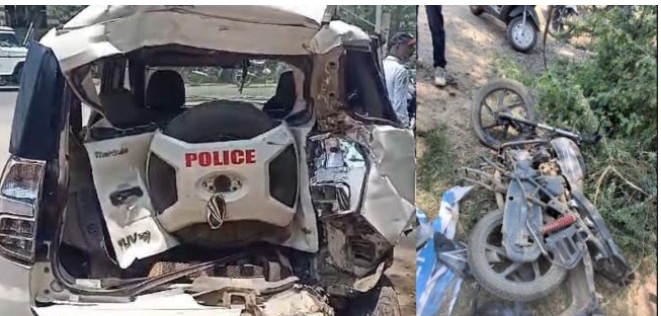 मालवाहू ट्रक ची बस,ट्रक व पोलीस वाहनाला जबर धडक; दुचाकीस्वाराचा जागीच मृत्यू..