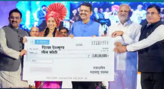 नागपूर :-नागपूरची १९ वर्षीय कन्या दिव्या देशमुख हिने बुद्धिबळ स्पर्धेत देशाचे नाव जगभरात उंचावले आहे.अश्यातच आज,शनिवार २ ऑगस्ट रोजी ग्रॅन्डमास्टर दिव्या देशमुख यांचा भव्य ‘नागरी सन्मान सोहळा’ नागपूर येथे संपन्न झाला.नागपूरमधील या सोहळ्याला मुख्यमंत्र्यांसह क्रीडामंत्री ॲड. माणिकराव कोकाटे,राज्यमंत्री ॲड.आशिष जयस्वाल, आमदार कृष्णा खोपडे,आमदार डॉ.परिणय फुके व इतर मान्यवर उपस्थित होते.राज्य सरकारच्यावतीने नागपूरकन्या आणि महाराष्ट्रकन्या म्हणून दिव्याचा सत्कार करत तिला तीन कोटी रुपयांचे पारितोषिकही देण्यात आले.यावेळी,दिव्यामुळे महाराष्ट्राची,देशाची मान जगभरात उंचावल्याची भावना मुख्यमंत्र्यांनी व्यक्त केली.दिव्याच्या विजयाने मला तिहेरी अभिमान आहे,असे म्हणत मुख्यमंत्री देवेंद्र फडणवीस यांनी दिव्या देशमुखच्या बुद्धीबळातील सुवर्ण विजयाचे कौतुक केले.पुढे बोलतांना मुख्यमंत्री म्हणाले की,दिव्याकडून सर्वांना प्रेरणा मिळाली,यासाठी तिचा नागरी सत्कार करण्याचे आयोजन केले.
