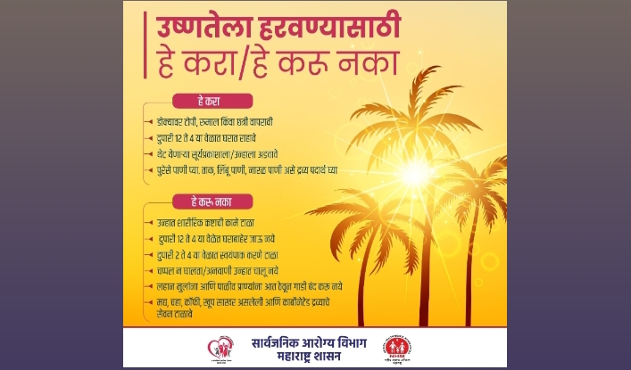 उष्माघात ही एक वैद्यकीय आणीबाणी आहे. कोणालाही उष्माघाताची लक्षणे दिसल्यास त्यांना त्वरित जवळच्या शासकीय रुग्णालयातील उष्माघात कक्षात दाखल करावे किंवा १०८/१०२ क्रमांकावर रुग्णवाहिकेसाठी संपर्क साधावा,असे आवाहन आरोग्य विभागातर्फे करण्यात आले आहे.